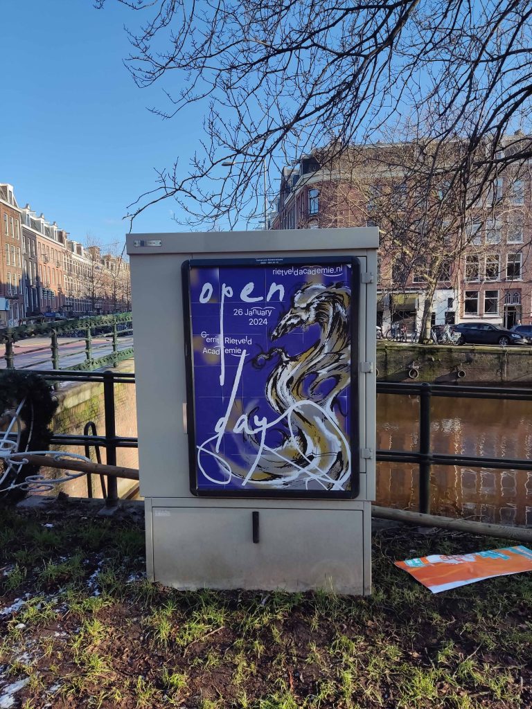 Concept and design for the campaign and signage of the Open Day 2024 of Gerrit Rietveld Academie, Amsterdam.